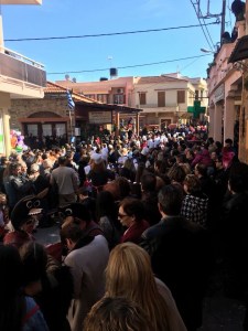 Geçmişi Ortaçağ’ a uzanan bu gelenek, korsan ve yağmacıların Sakız adasına saldırarak ada sakinlerinin ekinlerini ve tüm mallarını yağmalaması ile ilgilidir. Bir gün, köyün tümü eğlenirken; gözetleme kulesindeki (denizleri gözetleyen dairesel kuleler)nöbetçiler, korsanların yaklaştığını görür ve tüm köye haber salar. Thimiana Köyü sakinleri tamda eğlencenin havasıyla coşmuşken gelen haber üzerine sahile iner ve korsanlara tuzak kurarlar. Çok şiddetli geçen bir savaşın ardından, korsanlar püskürtülür. Köylüler zafer sarhoşluğuyla esirleri köy meydanına getirirler. Orada korsanları bir güzel döverler ve eğlenirler. Bu zaferin anısına her yıl bu karnaval gerçekleştirilir ve yörenin müzik gruplarının eşliğinde savaşan grupların yaptıkları hareketleri hatırlatan «Talim» adlı halk oyunları oynanır. Gerçekten çok eğlenceli ve keyifli zaman geçiriliyor burada, karnaval yaklaşık 3-3.5 saat kadar sürüyor, şimdi size bu şirin karnavaldan bazı fotoğraflar sunup yazımı noktalayacağım, bir dahaki sakız adası yazım daha ayrıntılı ve uzun olacak….