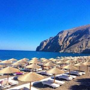 Adanın güneyinde kalan siyah kumlarıyla ünlü bu plaj dünyanın en güzel plajlarından biri olarak kabul ediliyor, Denize girer girmez hemen derinleşmeye başlayan bu plajda yazın iğne atsanız yere düşmüyor. Ayrıca burada çok sayıda taverna ve eğlence merkezleride bulunmaktadır.