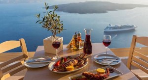 Santorini yunan adalarının en meşhur mutfaklarından birine sahiptir. Deniz ürünleri ve Zeytinyağlı yemekler oldukça meşhur olup fiyatları değişkendir. Yunan salatası, Frappe, Yunan kahvesi mutlaka denenmelidir.