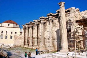 Roma İmparatoru Hadrian tarafından M.S. 132 yılında Akropolisin kuzeyine yaptırılmış olan bu kütüphanenin hemen yan tarafında Osmanlılardan kalma birde camii bulunmaktadır. Mustafa Ağa Camii günümüzde ibadathane yerine Yunan Halk Sanatları müzesi olarak hizmet vermektedir.