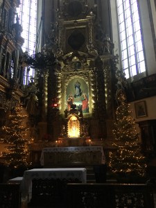 Diğerlerine göre renkli Gotik ve Barok resimler, 11 havari figürü, 1319’da ölen Lambert Longus’un mezar taşı, Barok ve Rokoko sunakları, 17. yüzyıldan kalma organ ve geyikler, birçok değerli çizim, iki şapel ve Tanrı’nın acı çeken başı figürü Chełmno (kuzey) ve Corpus Christi (güney) bölümlerinde yer almaktadır. Kilisenin en önemli özelliği ise Sevgililer gününü tüm dünyada kutlanmasını sağlayan Aziz Valentine’a ait Kafa tasının bu kilise içerisinde yer almasıdır.