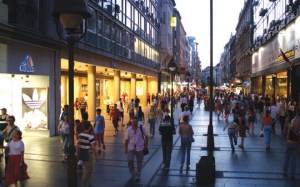 Bakü kent merkezindeki şık mimarili yürüyüş caddesi, Kafe, Restoran ve Mağazalar mevcut.